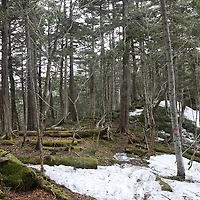 산은 겉보기보다는 오르기 쉽습니다만 곳곳에 얼음과 눈이 남아있습니다.